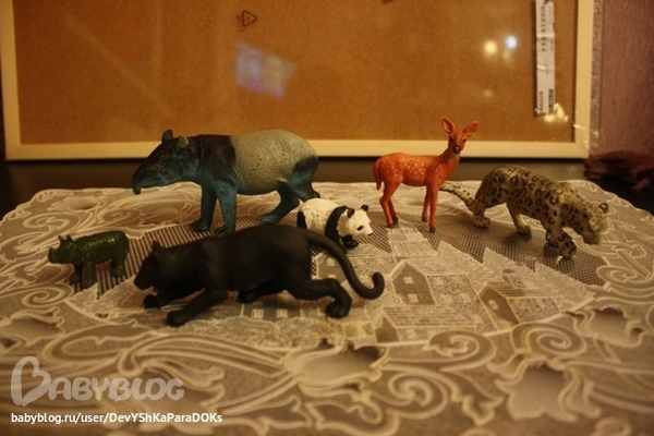 чуть дальше: слоненок, носорожек, бегемотик, шимпанзе, жирафенок - из набора