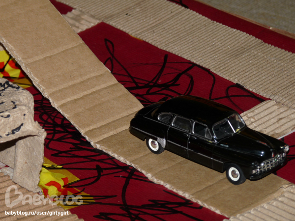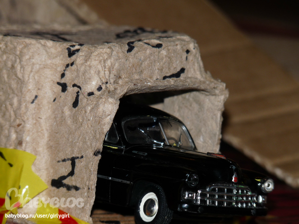 потом начали делать дороги, Платон помогал обдирать картон - мм однако) сделали гараж и тоннель.