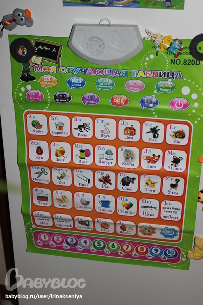 Рекомендую покупать плакат, если он произносит звуки: "М", "Н", "П" и т.д., если же плакат говорит буквами: "Мэ", "Пэ", "Рэ" - НЕ БЕРИТЕ! В своей практике очень часто сталкиваюсь с проблемой в чтении, дети, когда начинают сливать слоги, то читают: "МэА -МэА", вместо "МА-МА". При беседе с родителями выяснялось, что они изучали буквы либо при помощи плаката, либо при помощи "говорящих" книг-азбук.