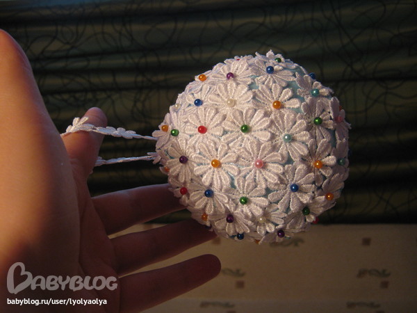 Шар очень красивый и оригинальный. Но это скорее декор готового шара, а не изготовление игрушки своими руками....