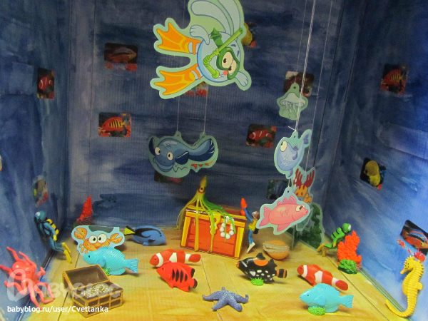 У нас тоже слабость к ракушкам/камешкам. Раскладывает в 3 баночки отдельно ракушки, камешки и коралы. Да, надо поднять у нас морскую тему))) Кста, на верх коробки можно еще и корабли подставить. Особенно для мальчика актуально