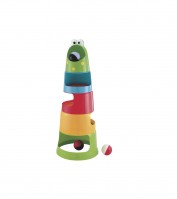 Смешиваем все фигурки, первый человек вытаскивает первую попавшуюся фигурку. Далее поочереди ставим друг на друга фигурки (главное нельзя повторять тип фигурок и цвета), проигрывает тот, кто разрушит башню)))