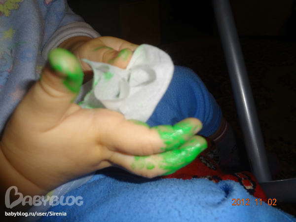 А теперь не маловажная процедура, это самому вытереть пальчики влажной салфеткой)))