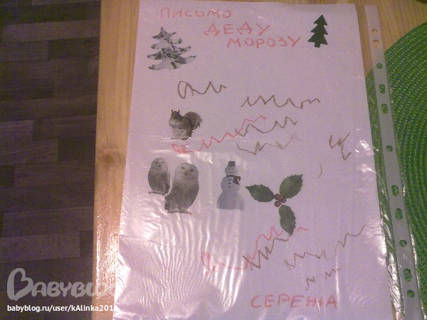 Написали мы его уже давно, но отправили только вчера) Сережа оформлял сам) наклейки выбрал и писал приговаривая ДЕДЕДЕ)))