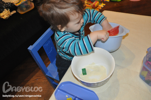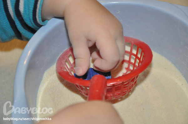 Игры и игрушки для малышей от 1 года до 2х летВсего пару раз сходили на разивалки (Я вся в двойственных переживаниях, ходить или не ходить - но сейчас не об этом), а я уже добрую часть игр повторила дома. Это одна из них. Конечно не раз ее видела здесь. Но хочу посоветовать тем, кто еще не пробывал. Я засекла время - 20 мин. мой непоседа сидел и пересыпал. Нам неврапотолог поставил диагноз гипервозбудимость и еще чего то там, так что про непоседу это я не выдумываю. Мне кажется помимо всей прочей пользы (сенсорика, крупная моторика и т.д.) эта игра еще и улучшает усидчивость или как правильно выразиться - формирует навык.