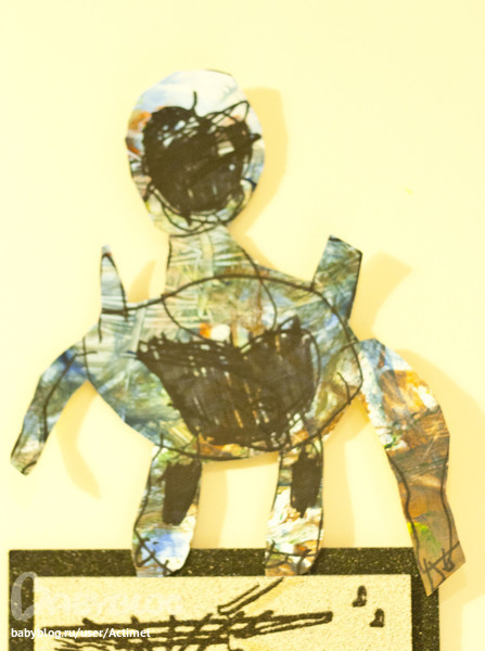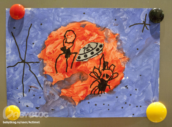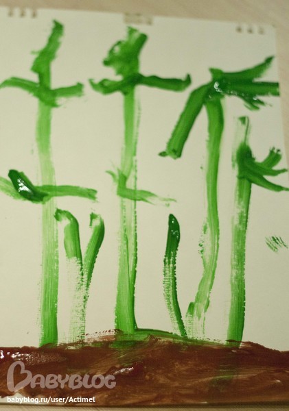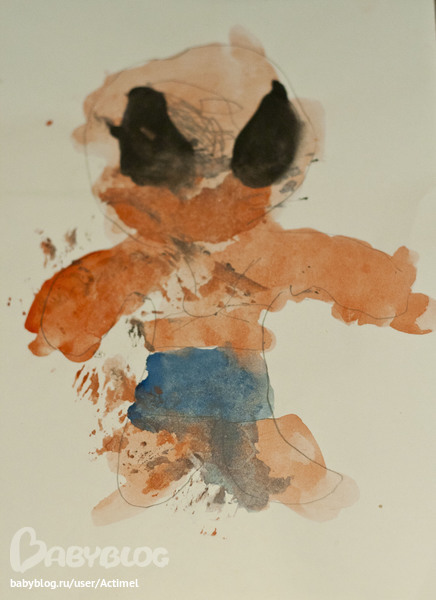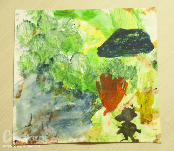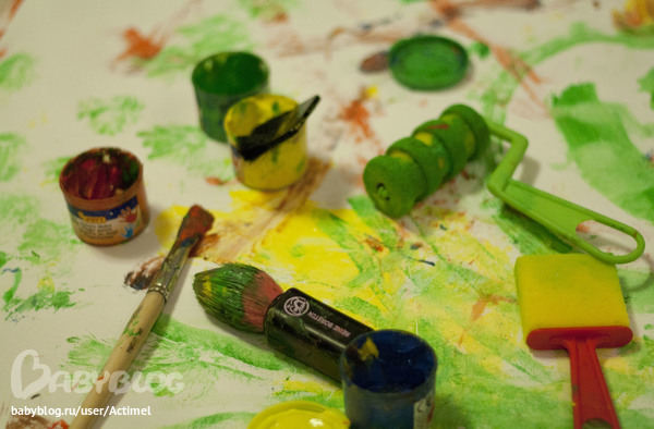 Горошек постоянно подкидывает нам материал для работ - рисует каждый день, принесет свой лист ватмана и требует краски