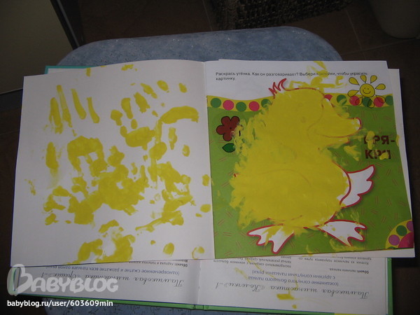 Я пока что противник пальчиковых красок, т.к. мы тащим все в рот и не можем сидеть долго на одном месте. Но ради ТН мы выделили на это вечер, в этом нам помог папа )))
