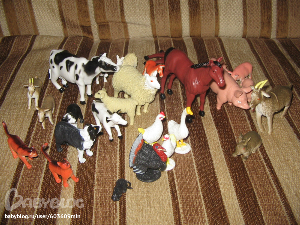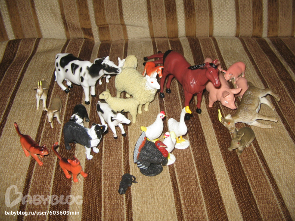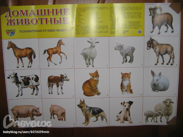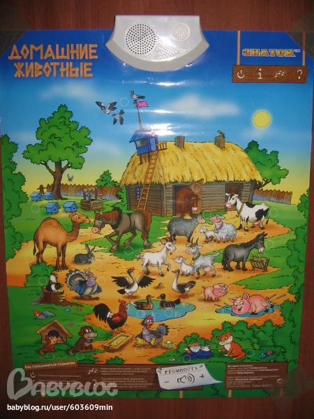 Потом изучали домашних животных на плакате. Мама нажимала на кнопочку и дочки слушали.