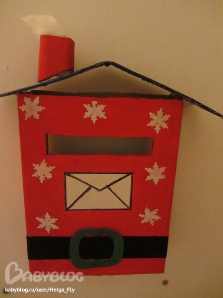 Любашечка, спасибо! А сделать его очень просто, понадобится коробка из под обуви, я ее немного шкуркой зашкурила, чтобы клей лучше клеил... Потом прорезала дырочку для писем и всю ее обклеила бумагой (вот только как она называется я к своему стыду не знаю((( Она такая тоненькая, у нас в рулонах продается, для упаковки и декорирования). Крыша и труба из картона, покрашены гуашью и приклеены на момент к дому. Ремень из той же бумаги что и дом, пряжка - картон. Конвертик - бумажный прямоугольник. В качества декора приклеила снежинки для скрапбукинга... Ну вот и весь секрет)))