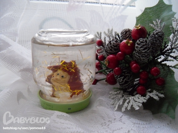 Самодельные игрушкиПомните, лет 15 назад в американских фильмах впервые стала мелькать такая рождественская игрушка? Стеклянный шар, который можно потрясти и увидеть как красиво падает снег? Тогда это казалось просто невероятным и очень хотелось тоже получить такую в подарок. В инете я нашла несколько идей, как такую игрушку можно сделать самостоятельно.Затрат практически никаких, а ребёнку можно подарить кусочек волшебства))