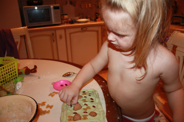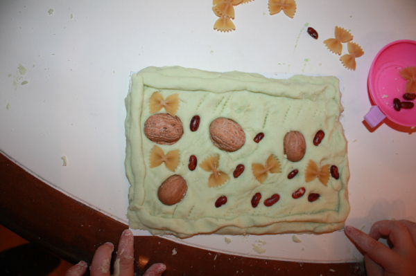 Пытались выложить последовательности: орех-фасоль, макарон - фасоль. Алиса сбивается пока.