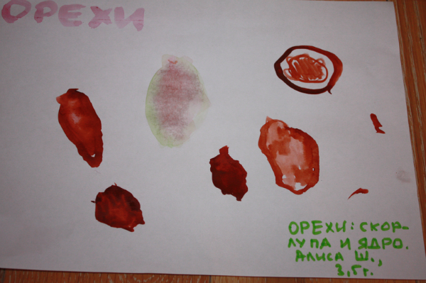 Это Алиса нарисовала. Зеркально отражение как видно. Грецкий и лесной орех с другой стороны.