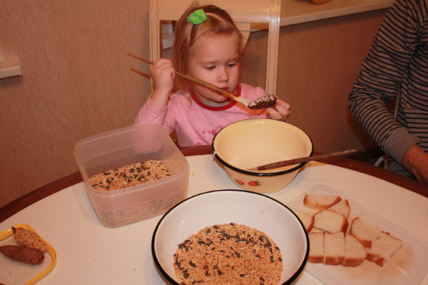 Для оставшихся зимовать птичек мы сделали лакомста по рецепту с kokokokids.ru