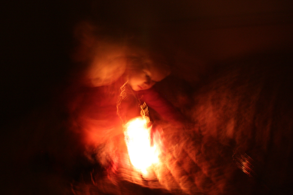 Вот пришли мы на поляну, там все звери, каждый свой фонарик принес, рассмотрели, зажгли фонарики. Папа нам волшебную музыку включил для создания атмосферы:) В середине вроде костерок