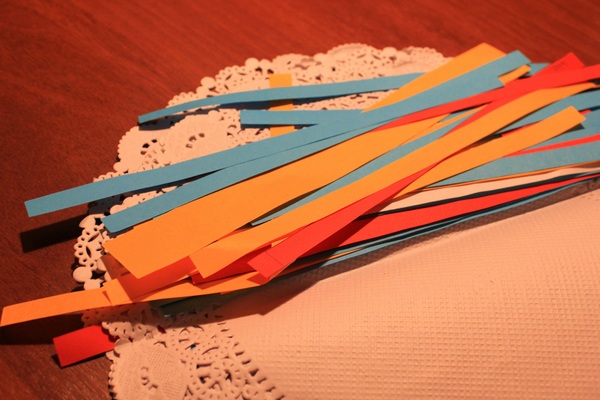 2.Ещё для нас стали помощниками длинные полоски цветной бумаги. Из них очень красивые аппликации получаются и поделки.