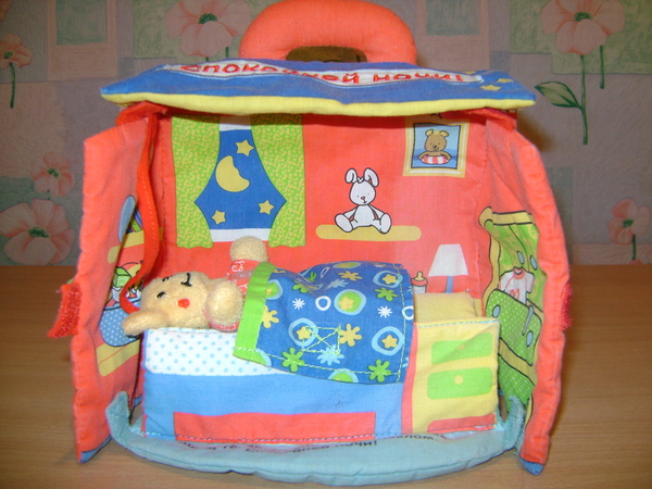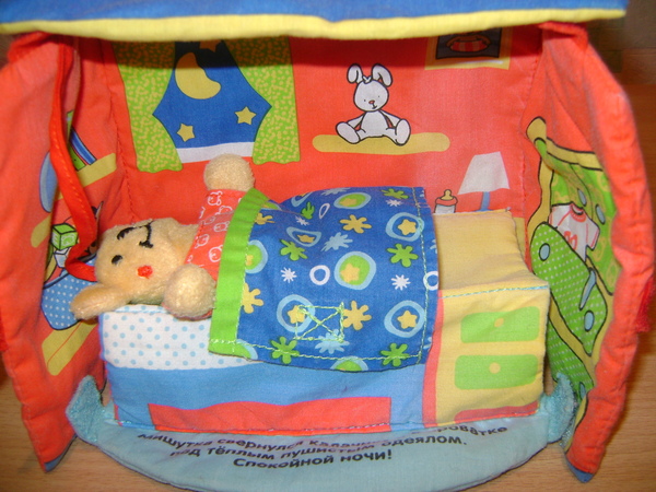 кровать разлаживается ,одеяло и сами углы комнаты на липучках,форма у кровати за счет ткани плотноватой,стоячей держится(внутри пусто)))выдерживает вес мишки