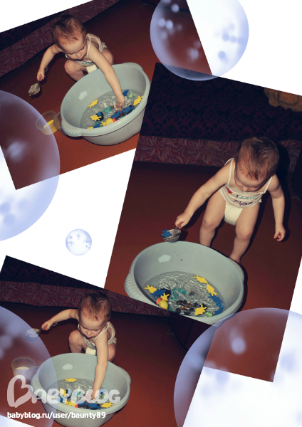 Понадобился тазик с водой и различные предметы(из дерева, пластмассы, бумага, ткань и т.д.).Пыталась объяснить дочке, что некоторые предметы тонут, некоторые остаются наплаву, но очень сложно ей что-то объяснять, когда рядом тазик с водой!)))))