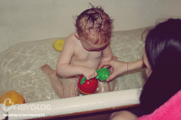 Купались вместе с куклой, София намылила её, потом мочалкой мыла, а после того, как покупались, вытерла полотенцем!!