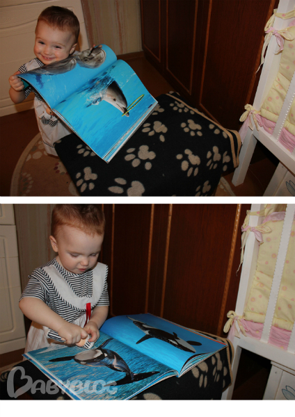 Так понравились ей дельфины, что она и жалела их, и давала буськи(правда, при помощи куколки на платье)