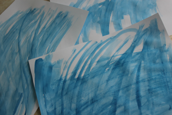 Потом, я предложила Софии нарисовать море! Рисовали под шум прибоя!