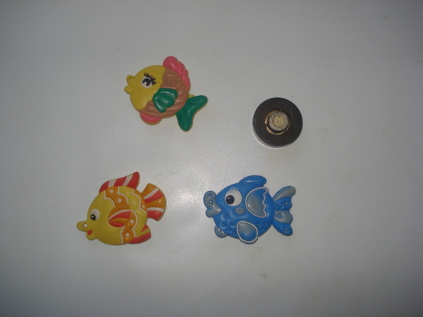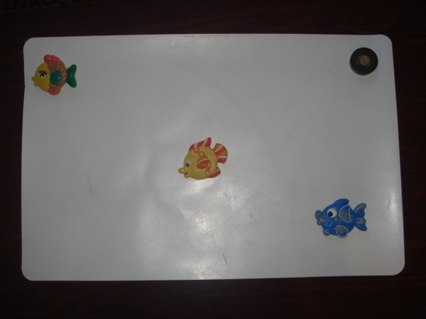 Предлагаю поиграть в рыбалку немного не обычно) Пригодятся любые магнитики (но только не на магнитной бумаге, типа "Растишки"), один большой магнит и какая-нибудь плотная, но тонкая основа (у нас пластиковые подставки под тарелки)