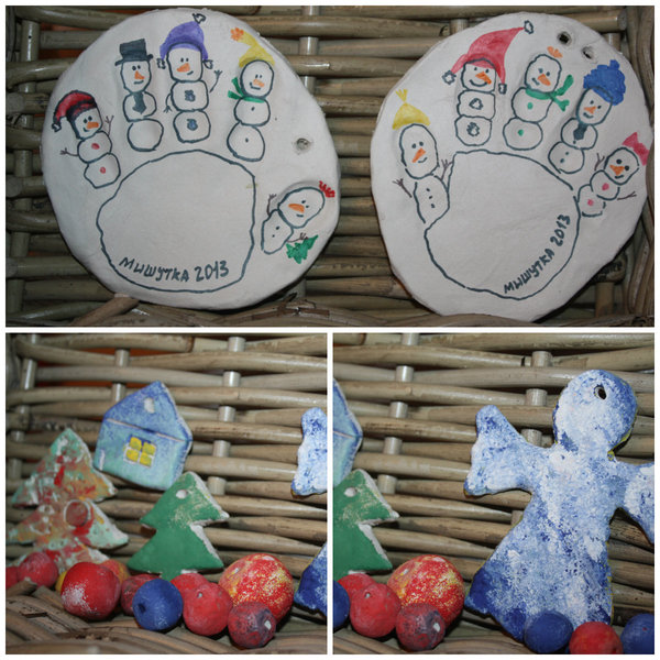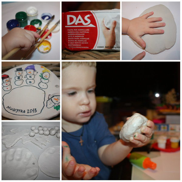 Достали мы давно купленную глину и решили сделать такие ладошки на память (сами по себе я такие слепки не очень люблю, а снеговики вроде получились милые).