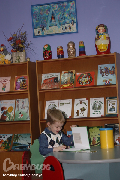 Мне понравилось все-все. Мы пришли пораньше, поэтому было время побывать в читальном зале, где помимо книг полно игрушек. И что меня удивило в моем сыне - он сразу рванул к книжкам. Он никогда не был в библиотеке, и такое количество книг посто сразило парня моего. Сережа брал одну книгу, листал, рассматривал, потом относил ее на место (хотя ему об этом никто не говорил), брал другую. Нашел несколько книг, как дома, чему очень обрадовался, что у него тоже есть такие.