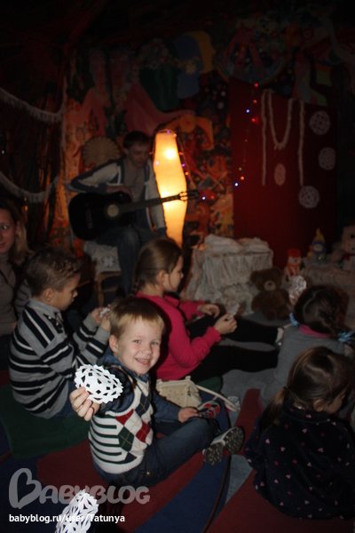 Деток было около15, вполне нормально. Меня поразила атмосфера внутри. Уютно, тепло, по-домашнему, тихо, все детки слушают внимательно. Очень-очень все душевно ))) Я в восторге!!! И Сереже тоже очень понравилось.