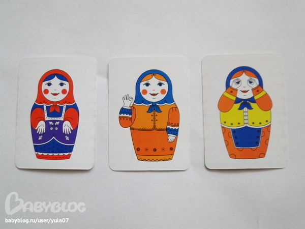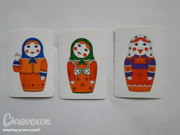 к примеру, на послежнем фото: у матрёшки, которая вытянула ладошки вперёд явно есть красный цвет. У второй матрёшки по идее есть синий, оранжевый и ... красный, но этот красный совсем не такой как красный у первой матрешки. Вообщем, не советую, забросили в дальний угол, так и не поиграв...