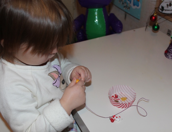 Петельки довольно маленькие, но Алиса меня приятно удивила - она отлично справилась с этой задачей без моей помощи )
