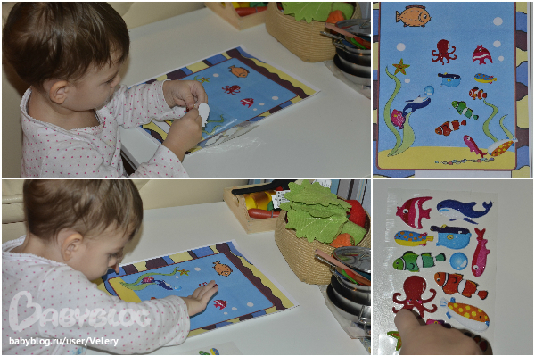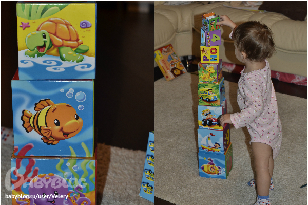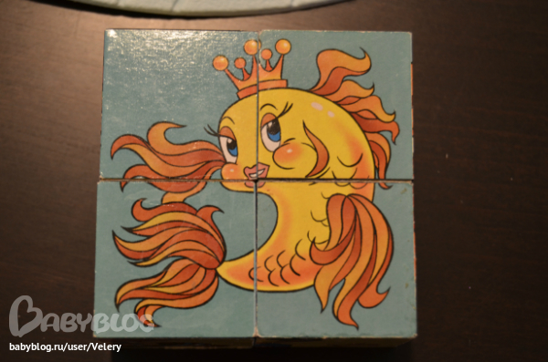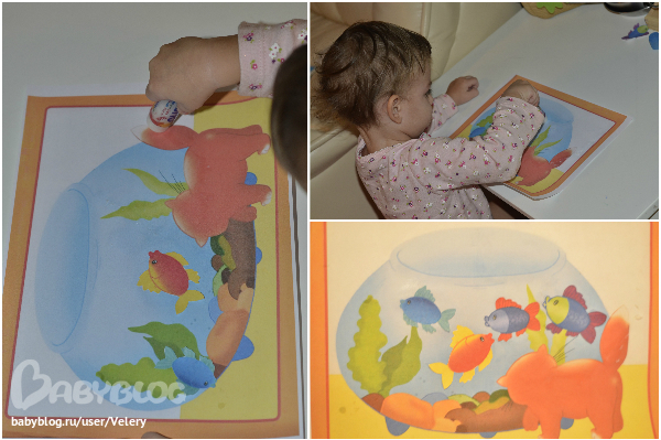 Кубики, Милана сама не складывает, но грань с рыбкой найти может.