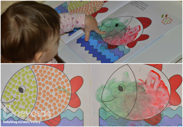 Сделали красивую рыбку пятнышками, но потом Милана все их размазала между собой.
