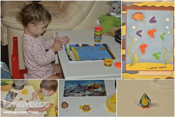 Пластилиновые картинки-рыбки. Черепашка(одну сделала я, чтобы Милане показать для примера, вторую вместе сделали). Пингвинчика лепили Милана с мужем вечерком, муж сказал, что Милана слепила глазки и лапки.
