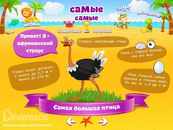 Здесь Вы найдете занимательные факты из жизни природы. Егор у меня долго не мог понять, как так у страуса размер мозга меньше, чем размер его глаза. Во как!!!