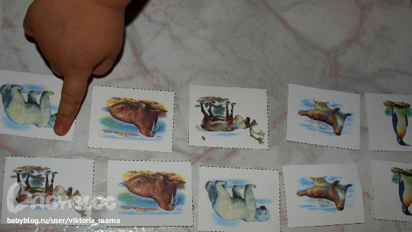 6. Вначале раскладываю 5 карточек и прошу Тиму запомнить в каком порядке я положила их. Затем перевернула и попросила положить карточки в нужном порядке. 2 карточки Тим перепутал местами.