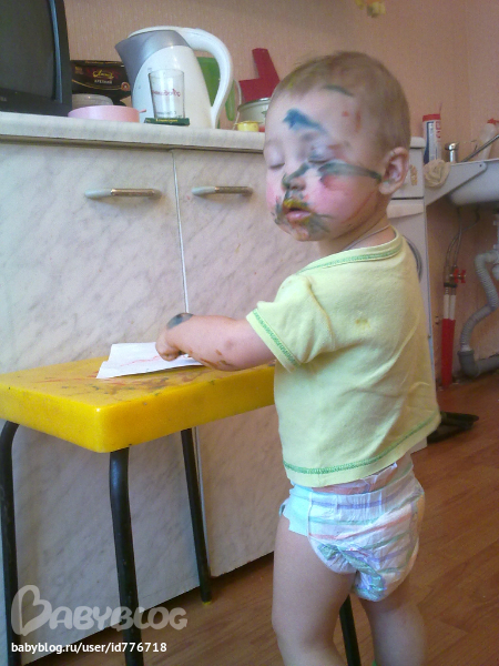 Запрещать ей рисовать так, как хочет? Пыталась объяснить, что рисуют на бумаге, она кавает и тут же усы себе рисует.