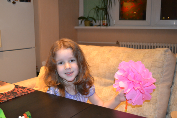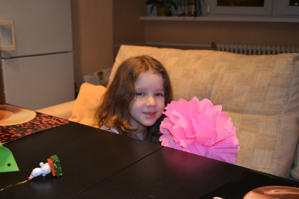 А ЕЩЕ хотела Евочке украшение к ДР сделать из бумажных помпонов и как-то потренировалась на салфетках. Она была в таком восторге, что пока мы дождемся 21 числа - ходить будем по цветам и украшать не надо будет))