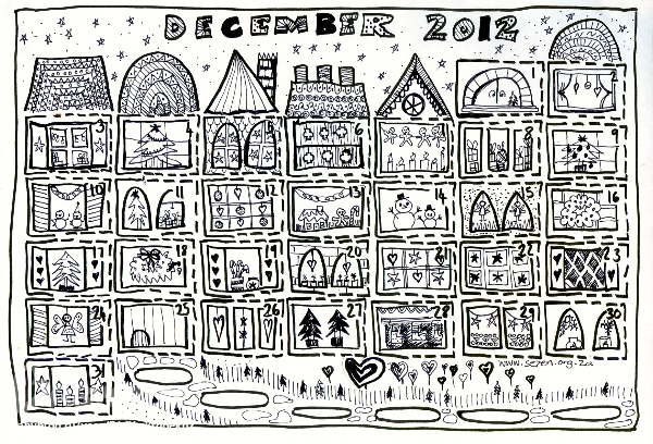 Праздник к нам пришел (Игры в День Рожденья, Новый год, 8 марта и.т.д.. А так же чем занять нескольВсем поклонникам Зимних, Летних, Осенних и Весенних книг и раскрасок. Нашла вот такой календарь на декабрь, на первой необходимо прорезать окошки, а вторая страница, это то, что должно быть в окне.