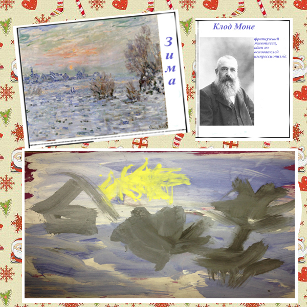 Знакомство с шедеврами классиков мы закрепили созданием своего "шедевра" (повторили картину Моне "Зима" при помощи зубной щетки).