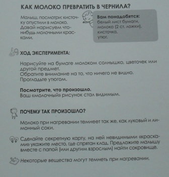 В этот раз мы взяли эксперимент "Как молоко превратить в чернила", а в дневничке у меня есть еще несколько интересных опытов.