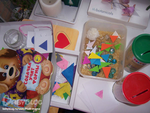 Как видно на верхнем фото, есть еще 2 банки (от чая для лактации, такие же есть и от детского чая). В крышках дырки прорезала. Хотела для сортировки, но в итоге просто так запихивала Василиса туда всё подряд. Отмечу это тоже ее достижение, попасть в тонкую щелочку, тонкой картонкой у нее не сразу получилось.