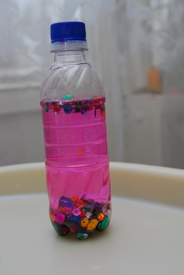 эта красивая бутылочка не вызвала ни малейшего интереса... к сожалению. Хочу еще с маслом, водой и блестками сделать, вот пока думаю стоит ли...