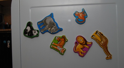 Еще про животных магнитных наших хочу написать, уж больно они мне нравятся. Так играючи мы учим животных. Играем так. В мисочку отсыпаю нужных животных, по одной малышок их берет и приклеивает на плиту (холодильник), потом когда все приклеит, по одной отклеивает и кладет в мисочу, есть вариант отклеить от плиты и наклеить на холодильник и так туда-сюда бегать. Ну и конечно, я постоянно проговариваю название каждого животного, иногда у него спрашиваю показать. Очень мне и малышу нравится, и животных учим в игре, и пальчики тренируем, и мама завтракает)))