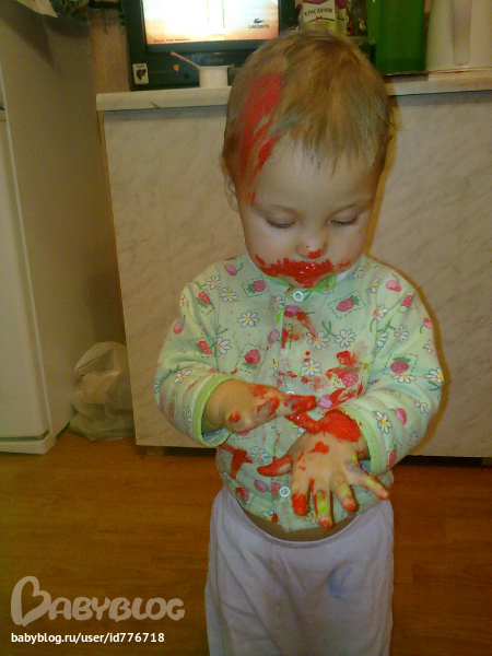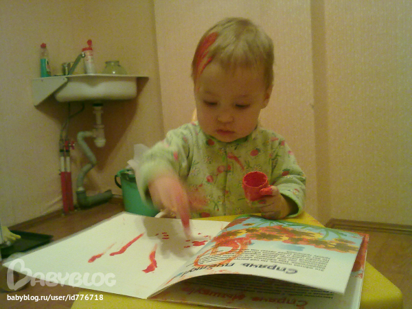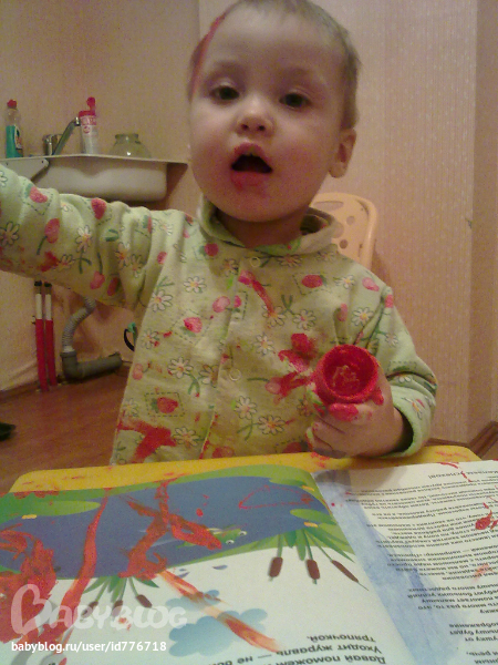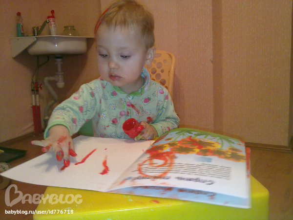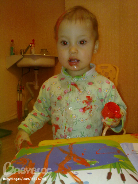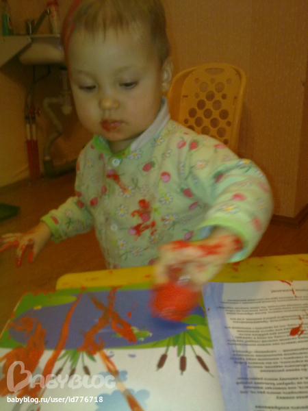 Первое задание с синей краской, спрятать в пруду лягушку прошло нормально, но дальше Юля так играть не захотла. И отказалась стирать нарисованное.