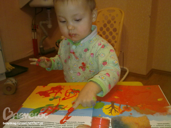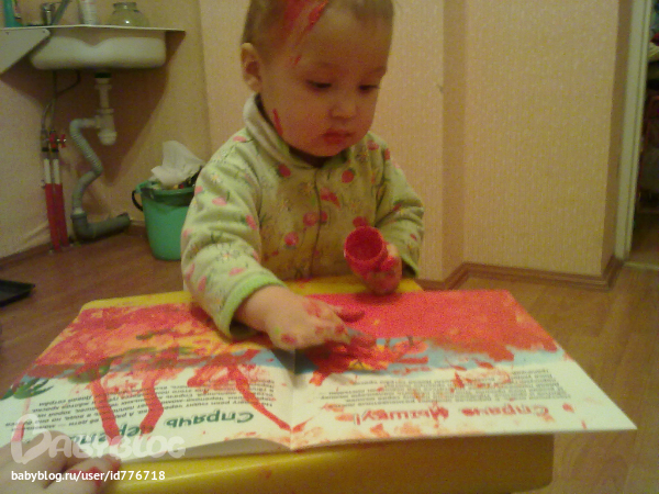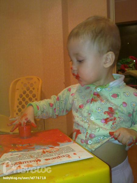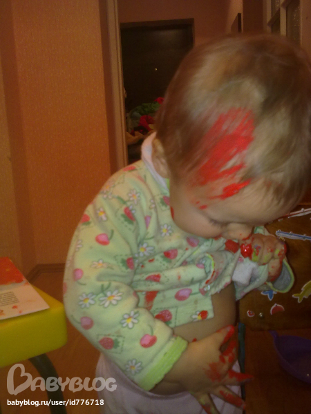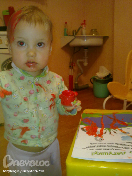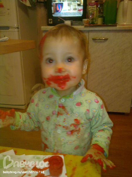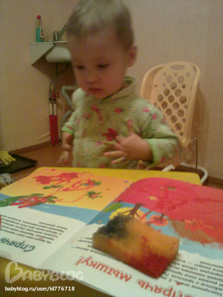 Потому,что никогда еще не рисовали губкой, хотелось попробовать. Но губкой Юле совсем не понравилось рисовать.Пальчиками лучше)))