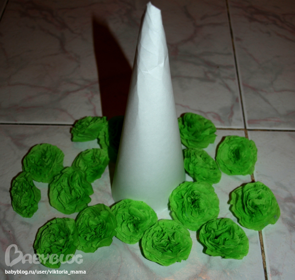 1. Вырезаем из гофрированной бумаги много кружочков.