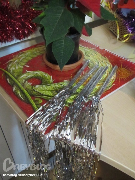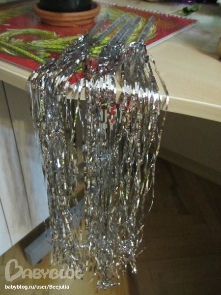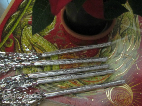 Делаются очень просто: взяла фломастер приклеила скотчем с одной стороны дождик, сам фломастер обматала фольгой, а сверху прозрачным скотчем, чтоб держалось!