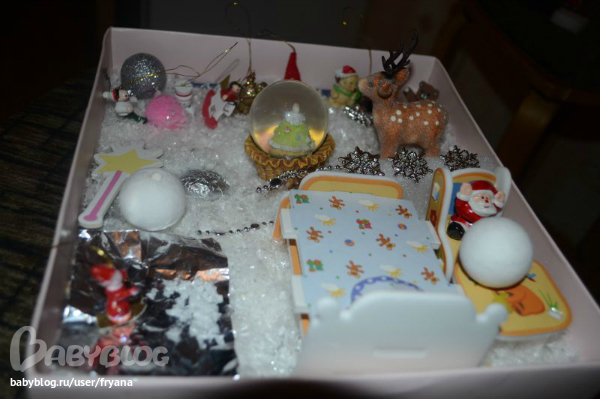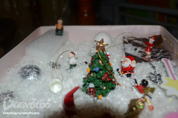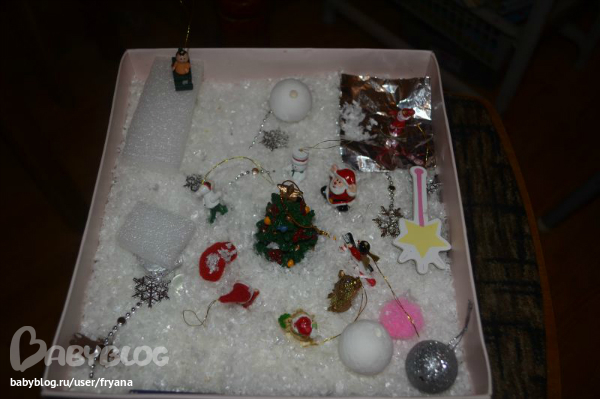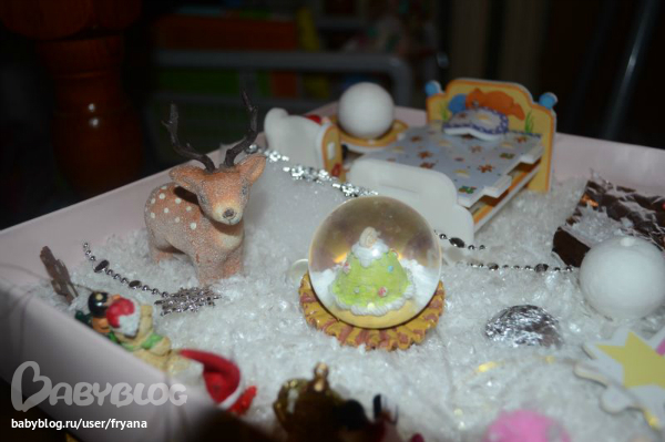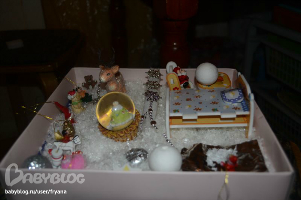 Здесь получился мини-домик для Деда Мороза, пока не придумала чем оградить, поставили просто бордюрчик