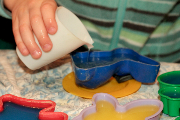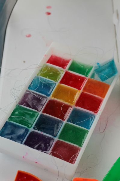 Ставим на ночь на балкон (даже на застекленном все застыло) и утром быстро-быстро бежим смотреть ,что получилось)))