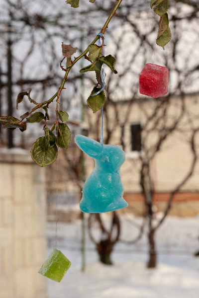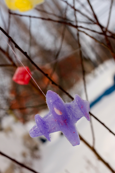 Самодельные игрушкиЦветные ледышки мы делали пару лет назад, но тогда не догадались до простого - сделать из них игрушки для уличных деревьев. Но увидев на днях пост Алёны (спасибо ей!) я решила тут же повторить это. И немножко добавила своего, а именно мы сделали еще и гирлянды))) Смотрите сами!